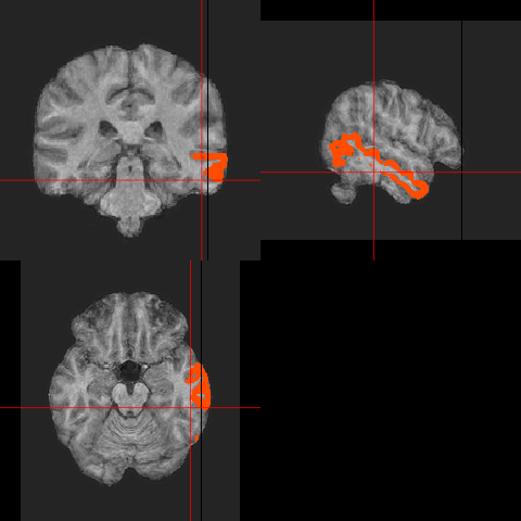 ortho2(sub10159_anat,broca,xyz=c(150,100,60))