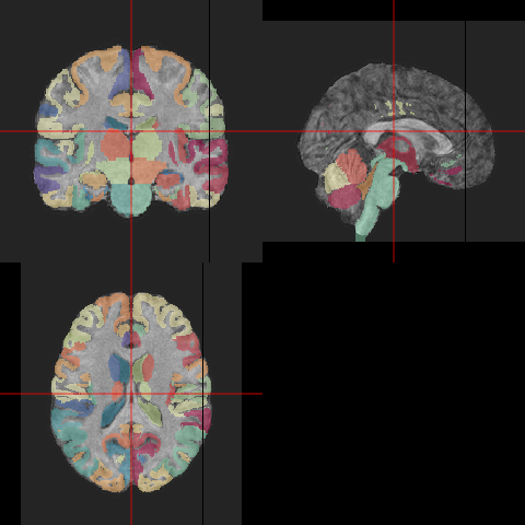 ortho2(sub10159_anat,atlas,col.y=alpha(sample(cols),0.5))
