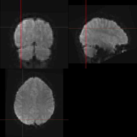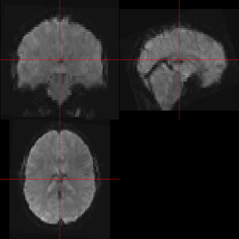 To visualize the nifti images, we can use the orthographic function. It will only show the 3D scan at one time point. R will automatically show the first timepoint.